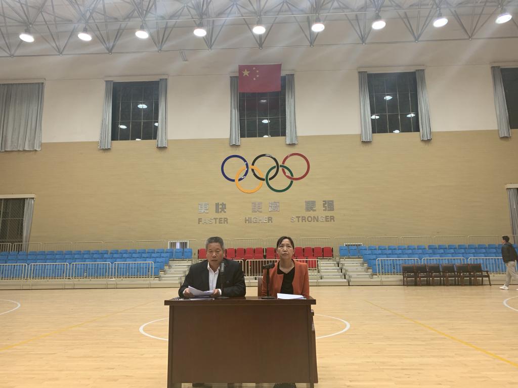 会上,副院长刘仁憨宣读了《金年会jinnianhuicom庆祝学校60周年校庆活动实施方案》,副院长雍世仁宣读了关于校庆期间体育学院纪律规定,18级社体班学生李佳明同学做了表态发言。